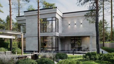 Лесные зори. Загородный дом площадью 520 м² по проекту foster dream расположен на лесном участке 13 соток. Лаконичный фасад с панорамными окнами и плоской кровлей облицован натуральным камнем серых оттенков. В коттедже выполнена отделка white box — осталось лишь выбрать финишные покрытия, мебель и текстиль. В каждой спальне предусмотрен свой санузел, на втором этаже разместили просторную террасу. В конутре дома расположен гараж на 2 машины. На участке выполнен ландшафтный дизайн, вымощена площадка перед домом и высажены кустарники.