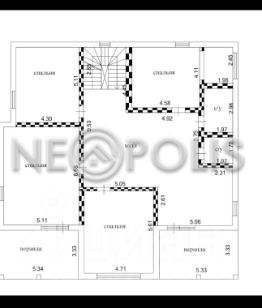 холл, спальня с выходом на веранду, 3 спальни, 2 санузла.