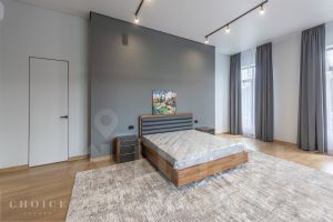 Загородный особняк площадью 1330 м² построен на просторном полевом участке 24 сотки. Планировка резиденции включает 7 спален, уютную гостиную с камином, открытую кухню, столовую, кабинет, сауну с зоной отдыха, тренажерный зал и переливной бассейн длиной 15 метров. На террасе обустроена зона барбекю. Рядом расположен гараж на 3 машины с мойкой, на втором этаже которого предусмотрена двухкомнатная квартира для персонала. На участке выполнены ландшафтный дизайн и дренажные работы, установлена система автоматического полива, по периметру высажены туи.