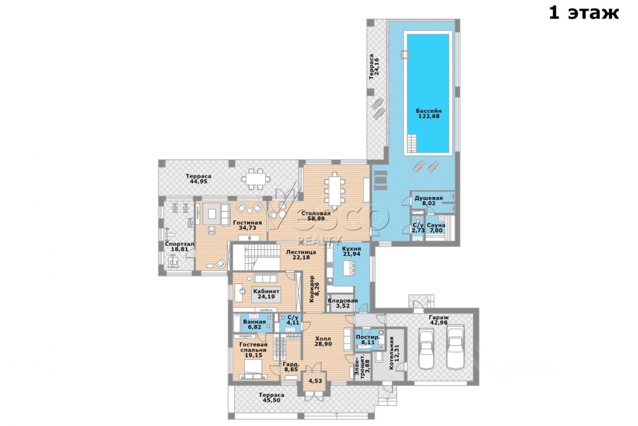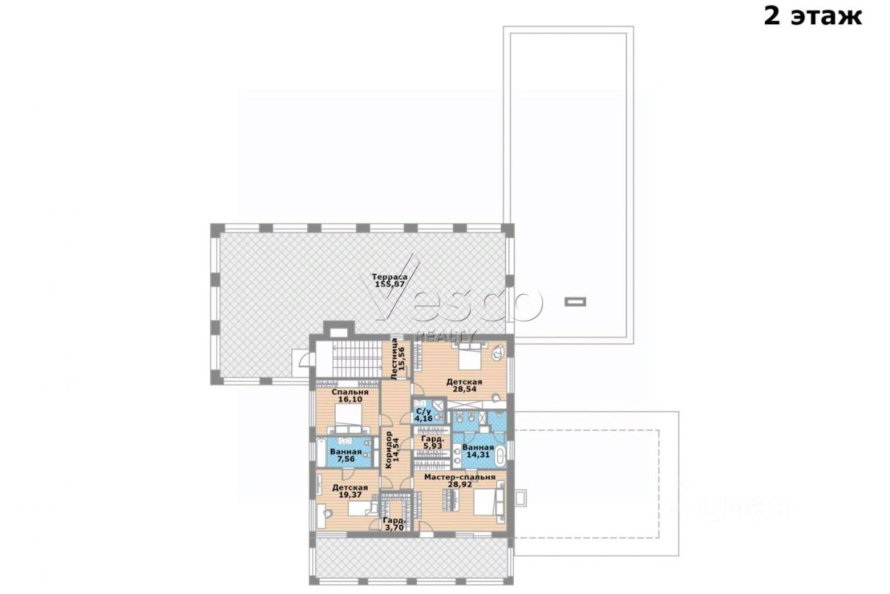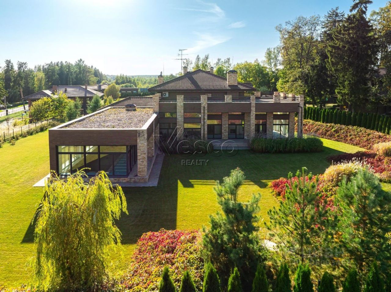 Лот 102519. Эксклюзив Vesco Realty. Коттеджный поселок "Усадьба Бергов" Современный двухэтажный дом 735 кв.м под чистовую отделку на участке 34 сот в клубном элитном поселке "Усадьба Бергов" в 23 км от МКАД на Киевском шоссе. Скоростной доступ по платной М-1 трассе Северный обход Одинцова и проспекту Багратиона от Москва-Сити. Главная точка притяжения поселка - благоустроенная набережная реки Десна протяженностью почти 600 метров. В доме 5 спален (одна из них - на первом этаже), 6 с/у, изолированная кухня, столовая-гостиная с камином, спа-комплекс с бассейном, кабинет, спортзал, гараж на 2 м/м и 2 шикарные террасы. Высокие потолки: первый этаж 4,5 м в черноте, второй 3,5. Панорамные окна, плоская крыша. Дом расположен в центре поселка, на возвышенности. Из окон и с террас открываются живописные виды на водонапорную башню и исторический парк. Территория Новой Москвы, столичная прописка. МАТЕРИАЛЫ СТРОИТЕЛЬСТВА Дом кирпичный, фундамент - ж/б плита, облицовка - керамический кирпич. В доме выполнены все черновые отделочные работы: установлены межкомнатные перегородки, все инженерные системы разведены по дому (электричество, отопление, водоснабжение), сделана подводка под сантехнику. В нескольких помещениях выполнена чистовая отделка. КОММУНИКАЦИИ Водоснабжение и канализация - центральные, городские. Газ - магистральный (оборудована котельная, котел Buderus 175 кВт). Электричество: есть, подключено. Ливневая канализация: проложена по улицам поселка. ПЛАНИРОВКА 1-й этаж: прихожая, гардеробная, кабинет, гостевая спальня с ванной комнатой и санузлом, гостевой с/у, кухня с кладовой, столовая с выходом на террасу, гостиная с камином, постирочная; СПА-зона (бассейн с выходом на террасу, сауна, с/у,); гараж (2 м/м). 2-й этаж: мастер-блок (43 кв.м) со спальней, гардеробной и ванной комнатой; 3 детские (16, 19 и 29 кв.м) и 2 с/у (4 и 8 кв.м). Выходы на террасы с видом на водонапорную башню из холла и из мастер-спальни. УЧАСТОК На участке 34 сотки выполнен ландшафтный дизайн - высажен газон, сосны, ели, декоративные растения, "живая изгородь" из туй, проложены тропинки. Площадка перед гаражом выполнена из брусчатки. Есть водостоки и дренажная система. ПОСЕЛОК КП "Усадьба Бергов" построен в едином архитектурном стиле по мотивам Ф.Л. Райта. При проектировании и строительстве предусмотрен высокий уровень комфорта и качества жизни: большие участки по 20-50 соток, продуманная посадка домов, широкие освещенные улицы с мягкими обзорными примыканиями и тихими тупиками. Поселок камерный: на площади 17 га расположено 34 домовладения. Большая часть домов построена, 16 семей проживают постоянно, еще 5 домов - в стадии активной отделки. На территории поселка расположено 4 объекта культурного наследия (водонапорная башня, две Усадьбы и парк с вековыми деревьями), 6,5 га общественных территорий, многофункциональная спортивная площадка, детский игровой комплекс, домик для йоги, причал, беседка для отдыха и многочисленные зоны отдыха с лавочками, лежаками и даже гамаком. Пешеходный закольцованный маршрут по территории поселка, большая часть которого пролегает по парковым зонам, составляет 1600 метров. На благо и в интересах жителей работает профессиональная служба эксплуатации. Для охраны организованы: контрольно-пропускной пункт, система видеонаблюдения, постоянное патрулирование территории. Усадьба Бергов входит в сос