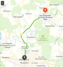 Поселок новый и развивающийся, в дальнейшем предусмотрено строительство необходимой для жизни инфраструктуры в самом поселке. Сейчас до сетевых продуктовых магазинов на машине около 10 минут езды. До города областного значения Можайск на машине - около 20 минут.
