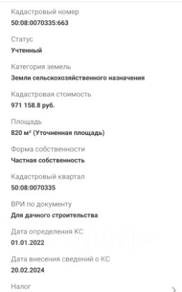 • Кадастровый номер 50:08:0070335:663