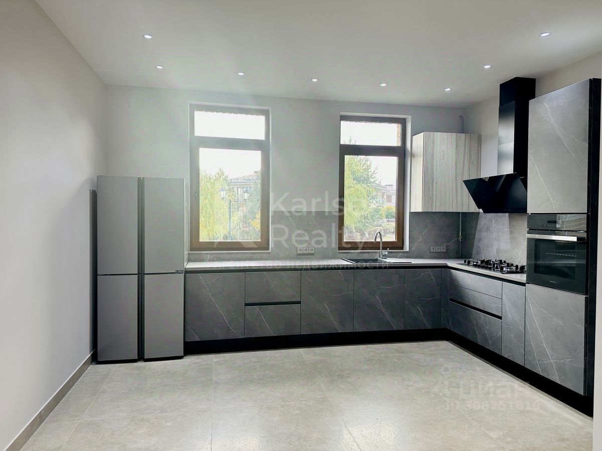 В доме выполнена отделка из дорогостоящих качественных материалов, установлены радиаторы отопления и двухкамерные стеклопакеты, газовый котел итальянского производителя BAXI мощностью 90 кВт, в доме есть гараж на 1 авто и 2 парковочных места перед домом. Кухня оснащена всей необходимой техникой - газовая плита, духовой шкаф, вытяжка, посудомоечная машина, двухкамерный холодильник. Проведен водяной теплый пол по всему первому этажу, в санузлах второго этажа и на цокольном этаже. В постирочной установлена стиральная машина, также есть сауна с комнатой отдыха, отдельный блок для персонала с отдельным входом.
