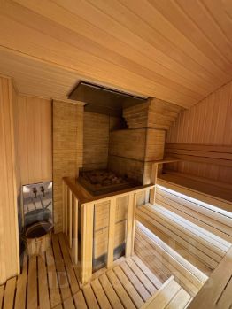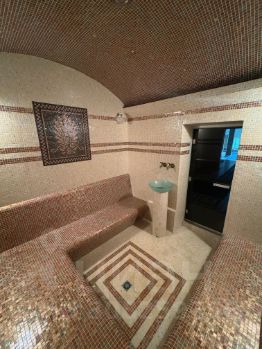В доме есть эксклюзивный бассейн 13.2 Х 5.6 метра, противоток и водопад, джакузи 2.7 Х 2.7 метра, купель 2.9 Х 3.4 метра, русская дровяная парная, турецкий хамам, русский бильярд, авторские камины, полы с подогревом. Общая автоматическая вентиляция, система АПС.