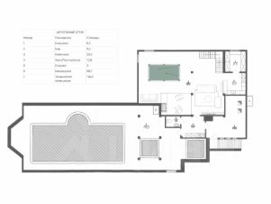 Дом 737 кв. м.: Цокольный этаж, биллиардная, камин, барная стойка, комната для хранения напитков и кегель для пива. Сан узел. Котельная. Помещение для обслуживания оборудования бассейна, джакузи, купели, вентиляции. Все полы с подогревом. Первый этаж, камин, столовая, каминный зал кухня-столовая, панорамные окна в пол с выходом на крытую террасу. Полы плитка, все полы с подогревом. Русская парная, хамам, купель, джакузи, бассейн, комната для переодевания, санузел, два встроенных душа, топочная. Второй этаж, холл панорамные окна с выходом на крытую террасу, три спальни, два сан узла, душ, ванна. Полы дубовая паркетная доска. Мансардные окна, в спальнях кондиционеры.