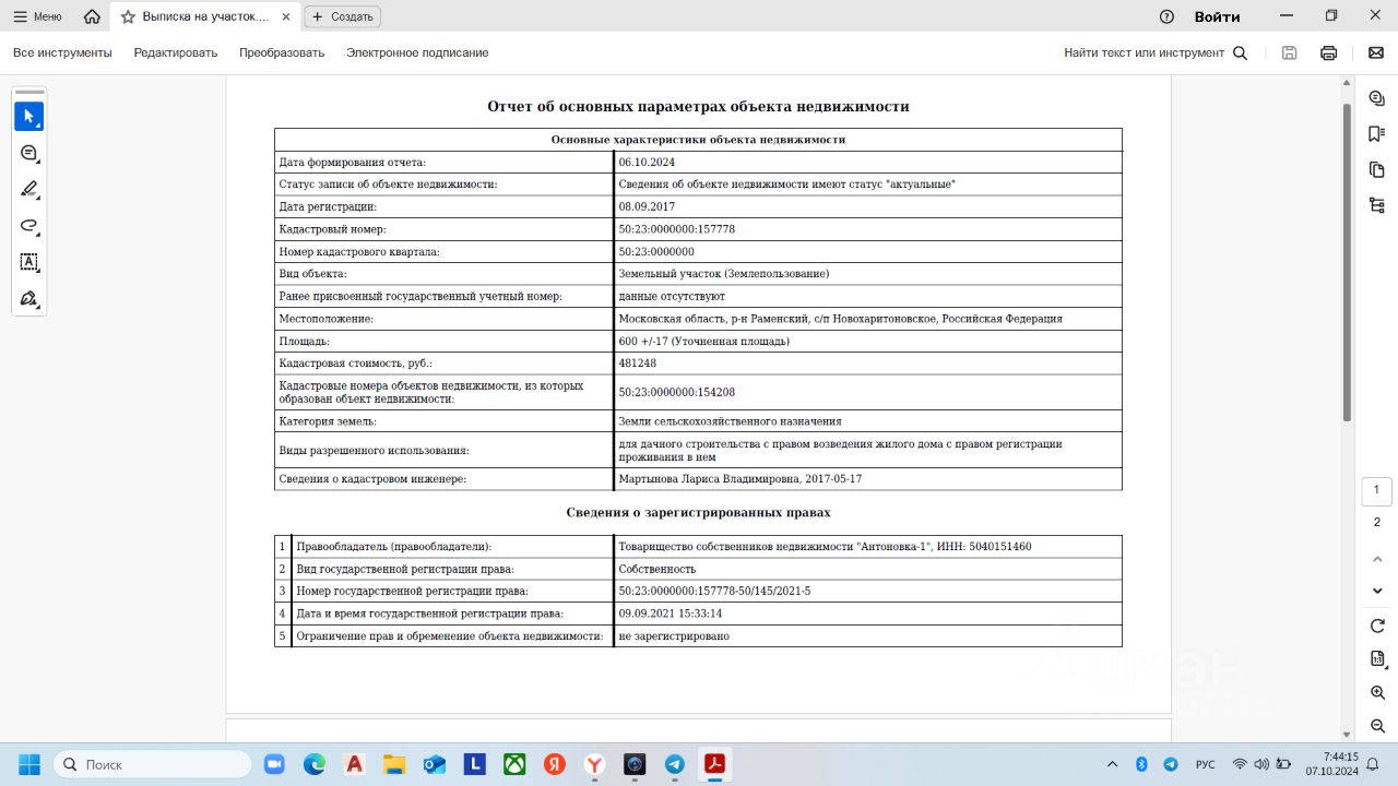 Участок от собственника. Собственник ТСН Антоновка-1. Продается по решению общего собрания членов. Участок сухой, ровный. К участку подведено 15 квт. Стоит счетчик. По границе газ. Разрешение на врезку входит в стоимость. Газопровод стоит на балансе ТСН Антоновка-1. 5 мин ходьбы от ст. Игнатьево. Казанское направление. 10 мин. до маршрутки в Раменское. Поселок закрыт. Ночью освещен. Зимой чистится регулярно. Дороги в хорошем состоянии.