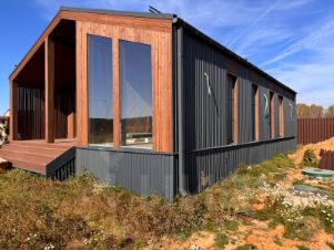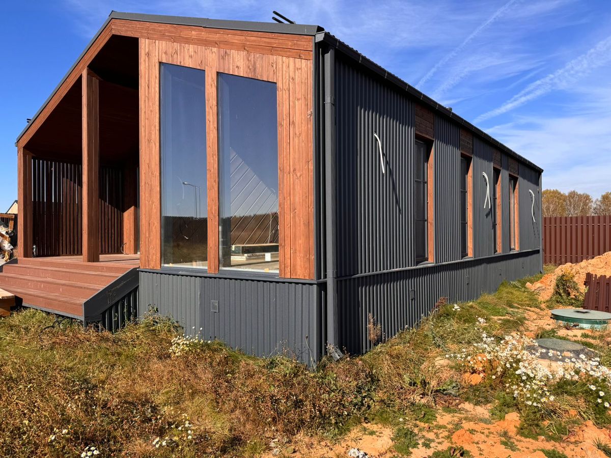 Предлагается к продаже современный дом (барнхаус) в охраняемом коттеджном поселке БИЗНЕС КЛАССА у реки. Панорамный дом для постоянного проживания.