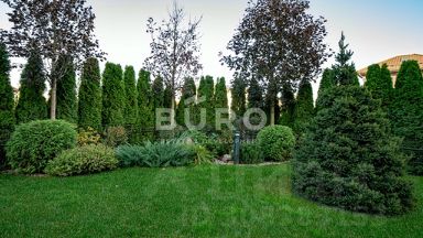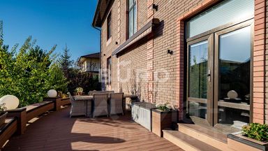 На террасе будет удобно накрывать на стол и устраивать душевные посиделки в теплое время года. На участке с превосходным ландшафтным дизайном уложен газон, сделаны дорожки, растут плодовые деревья и кустарники. Высокие туи по периметру участка создают приватную обстановку. Имеется хозпостройка для хранения садового инвентаря. Предусмотрены автополив и дренаж. Благодаря уличному освещению в вечернее время царит романтическая атмосфера.