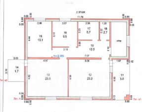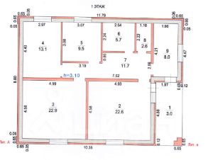 1 этаж: вход - коридор 12 м², в нем же расположен газовый котел, прямо выход на лестницу, налево вход в кухню 23 КВ. м. сан узел 2.7 м², душевая 6 м², гостевая комната 13 м², кабинет 10 м², коридор 12 м², хол 23 м². Все комнаты изолированные. Подвал 16 м² для хранения продуктов, там же водозабор и автоматическая подача воды.