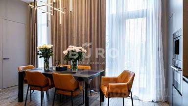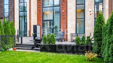 Трехуровневый таунхаус площадью 278 м² построен на уютном полевом участке 2,2 сотки.