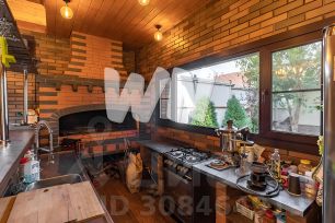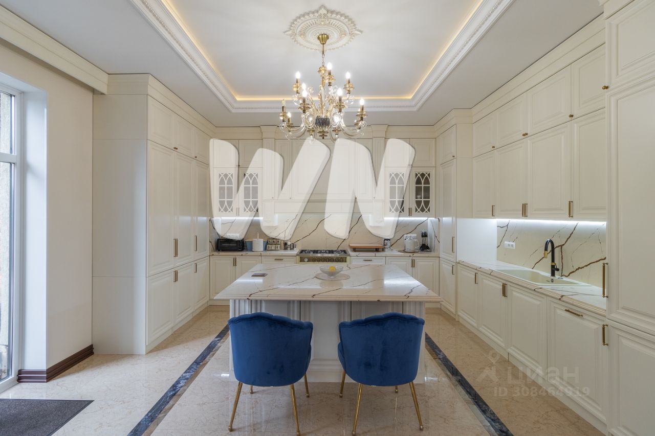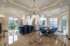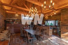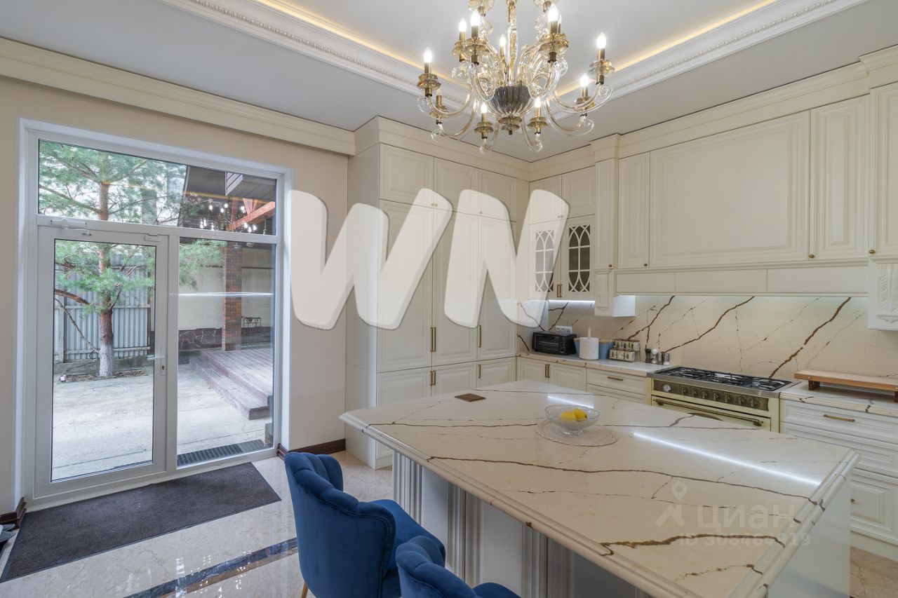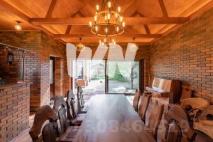 В доме есть просторная кухня-гостиная с островом, камином, шикарным большим столом и выходом к уютной беседке с раздвижным панорамным остеклением, укомплектованной кухней и мангалом.