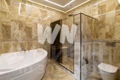 В доме 5 спален, 2 гардеробные комнаты, 3 санузла с душевыми и ванной, а также гостевой санузел и постирочная комната.