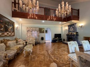 В основном доме три этажа: кухня, прихожая три спальни, три с\у, кабинет, огромный зал с камином, мансарда, балкон, готов к проживанию. На территории имеется дом для персонала 100 кв.метров, сарай, гараж, и парковка на 6 авто. На участке выполнен ухоженный ландшафт, участок солнечный.