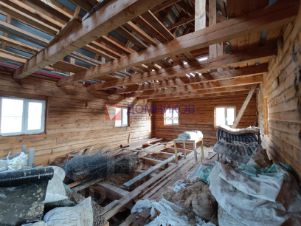 Дом ~70 кв.м (6*9 м) - из бруса 150*150, облицован силикатным кирпичем, 2019 года постройки (не зарегистрирован). Без внутренней отделки.