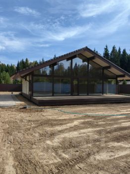 Остекление двухкамерный стеклопакет с аргоном и энергосберегающим напылением. Установлены деревянные двери из дуба, с немецкой фурнитурой, производство Белоруской фабрики. Терраса из лиственницы, покрыта канадским маслом 3 слоя.