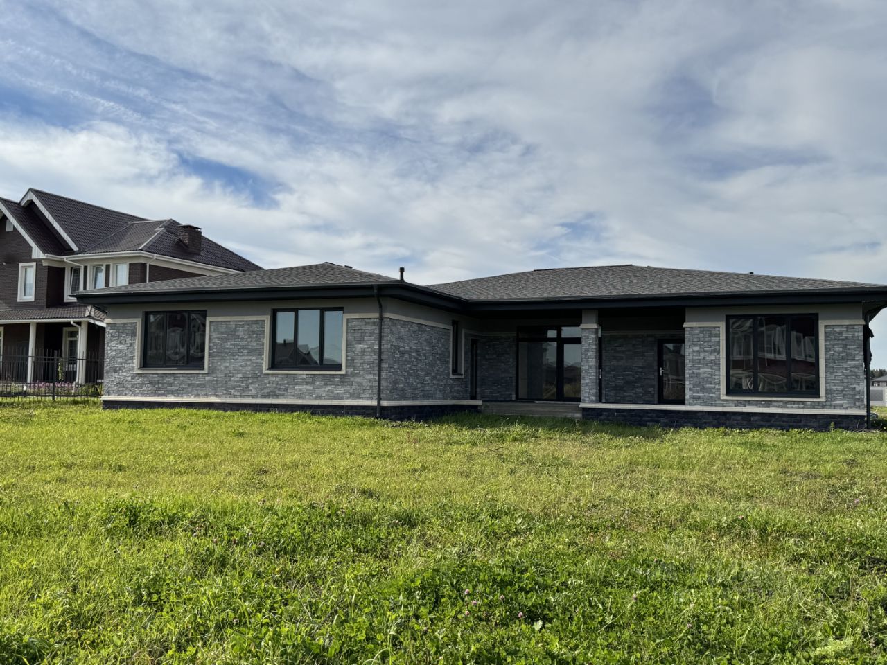 Продается одноэтажный дом на пять спален в КП Эсквайр парк. Параметры: 264 кв.м, участок 15 соток, со всеми центральными коммуникациями. Дом построен по индивидуальному проекту, котельная и кладовая с отдельным входом.