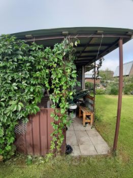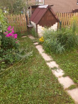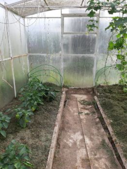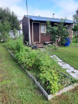 На участке две дровницы, бытовка 2,3*6м, две теплицы по 6м длиной каждая, мангальная, беседка, сушилка для белья, детский спортивный уголок, стоянка для 3-х авто.