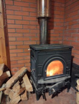 В доме отопление комбинированное: печь импортная длительного горения и электрические радиаторы в каждом помещении. Можно топить по отдельности или одновременно. Электричество 15 КВт. Печь скандинавская, с варочной плитой, стена обложена кирпичом.