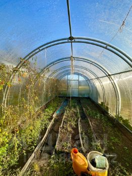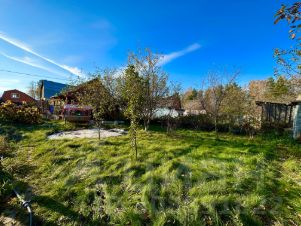 На участке 6 соток растут плодовые деревья, кустарники, цветы, газон. Имеется новая теплица, сарай и место под бассейн. Участок ровный, сухой, правильный формы с забором по периметру.