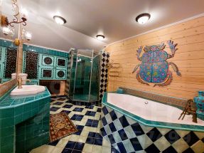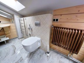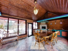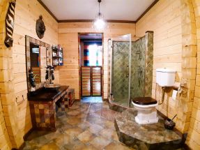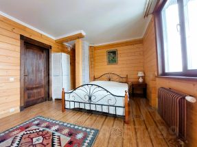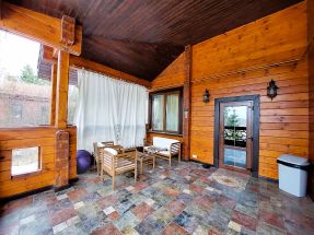 Описание внутренней отделки: выполнена в стиле эко-шале. В отделке использовано много натурального камня и дерева. В санузлах плитка. Система теплые полы.. Инженерное обеспечение: Wi-fi роутер, эфирная антенна. Мебель, оборудование: установлена кухня, обеденный гарнитур на 6 персон.