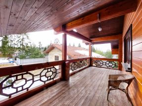 Продается дом в стиле эко-шале в охраняемом коттеджном поселке с центральными коммуникациями.