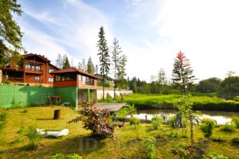 На участке находится дом для барбекю. Из окон открывается великолепный вид на пруд и речку.