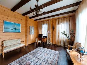 Выполнена качественная отделка из дорогих натуральных материалов. В доме высокие потолки, много окон и естественного света. Центральные коммуникации. Год постройки: 2017. Материал стен: клееный брус.