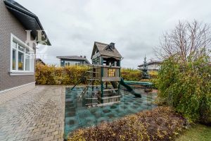 Участок правильной формы, сделан ландшафтный дизайн, высажены декоративные кустарники и плодовые деревья. Сделан дренаж, автополив, установлено освещение, вымощены дорожки. Также построена летняя беседка из бруса в которую заведено водоснабжение и электричество. Премиальное оборудование: уличные фонари-обогреватели, барбекю и садовая мебель. Дополнительно к гаражу сделан навес для автомобилей.