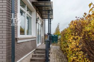 Дом построен из кирпичных блоков RAUF, снаружи отделан немецким клинкером FELDHAUS. Кровля CERTAIN TEED. Установлено остекление фирмы KALEVA DECO. На кухне встроенная техника известных марок: LIENHERR, DE DIETRICH, BOSCH.