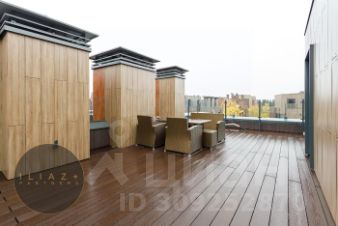 Стильный таунхаус площадью 169 м2 свободной планировки с отделкой . Этажи соединяет монолитная лестница. Таунхаус имеет эксплуатированную кровлю.