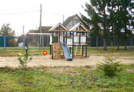 Удобный подъезд по хорошей асфальтированной дороге. Въезд в поселок через автоматические ворота с видеонаблюдением. Полностью закрытая территория. Рядом лес, общий выход в который через калитку с кодовым замком. Есть детская площадка, закрытая контейнерная площадка для сбора мусора. Очень уютный камерный поселок.