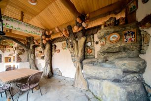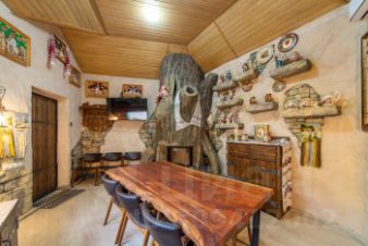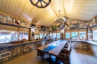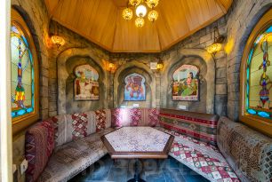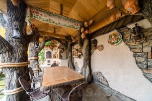 Во дворе большой пруд с системой очистки, две колоритные летние кухни с теплыми полами, с беседкой, двухэтажная баня с комнатами отдыха, отдельной кухней, гараж, кальянная. Растут множество плодовых и хвойных деревьев. Площадь участка 21 сот.