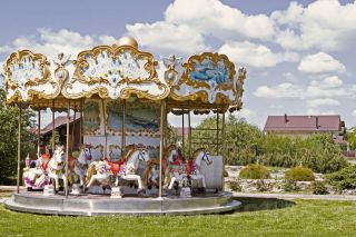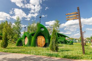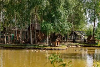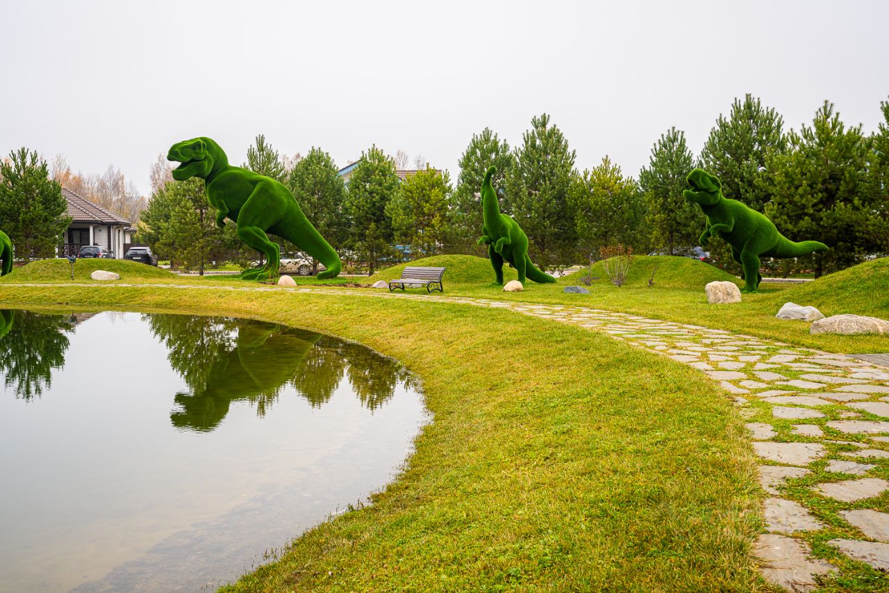 прогулочные зоны, русская баня, турецкий хаммам, финская парная, детский развлекательный центр, контактный зоопарк в окружении воды, ресторан и два банкетных зала (на 60 и 120 гостей), крупнейший в России Парк динозавров.