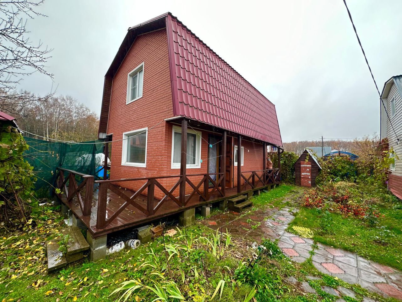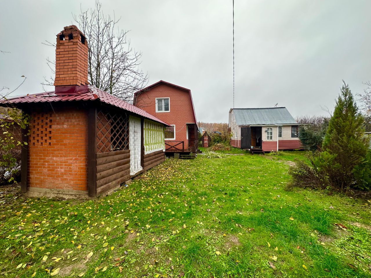 На участке так же имеется беседка с кирпичной печью и мангалом, дровница и уличный туалет.
