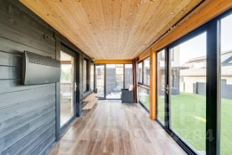 В современном коттеджном поселке бизнес клаcса Лес и Река, продается дом с отделкой White box в стиле хайтек об.площадью 268м2., гостевым домом- баней 102м2 из бруса на участке 6.74 сотки.