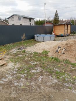 участок 8.59 сот. на участке дом-баня каркас большая комната ,помывочная,парная (осина) с утеплением 150 по кругу 6 на 5 постройка октябрь 2024 года (терем), колодец 10 колец вода в 4 кольцах, хозблок от ( будка догс) ,забор по кругу (мастеровит) , подготовленное место для беседки ( яма, геотекстиль , щебень) ,въезд в ворота щебень, посажены пара яблонь, малина, смородина, гортензии ,серень . участок на возвышенности (не болото!!! песок) можно под строительство дома , дороги в посёлке асфальт. в шаговой доступности школа , садик, магазины и все прелести цивилизации!! электричество, центральное водоснабжение по границе участка, газ по границе участка.