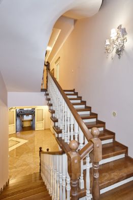 Дом 4-х уровневый, кирпичный, фасад отделан мраморной штукатуркой Bayramix. Все коммуникации центральные. Интерьер выполнен в классическом стиле с применением натуральных, дорогостоящих материалов. В доме предусмотрены все удобства для комфортного и размеренного проживания за городом в 10 км от МКАД.