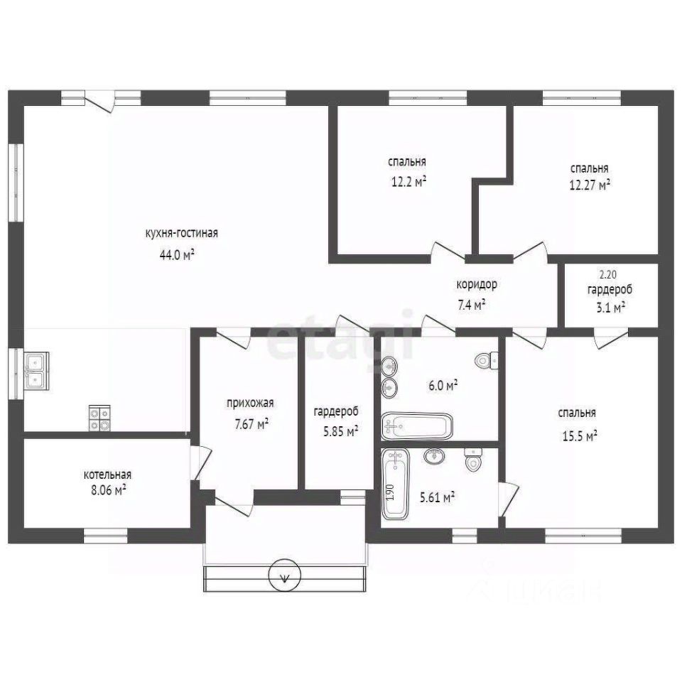 Огромная кухня-гостиная, 3 спальни, 2 санузла, 2 гардеробные комнаты.