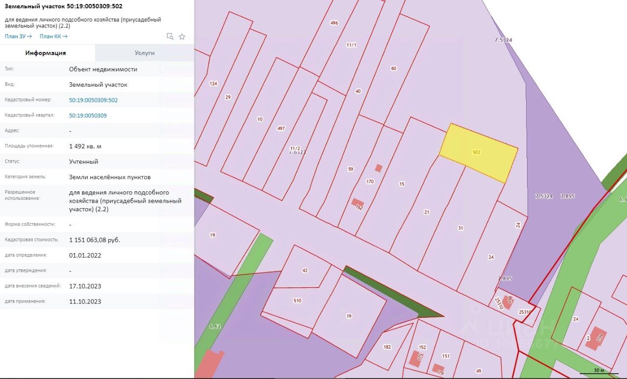Участок в аренде на 20 лет от государства. Кадастровый номер 50:19:0050309:502.