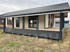Просторная кухня-гостиная (высота потолков 4,8м) с панорамными окнами и двумя выходами на террасу. Отдельный тёплый вход через прихожую. В доме 3 (три) спальни и просторная ванная комната. Высота потолков 3 метра.