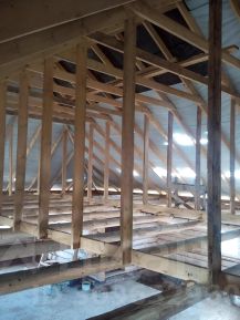 Вальмовая крыша позволит значительно увеличить жилую площадь за счет мансардного этажа. Крыша покрыта металлочерепицей и утеплена 150 мм.