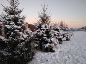 Забор на ленточном фундаменте из профлиста, кирпичные столбы входной группы, высаженные вдоль дороги взрослые ели.