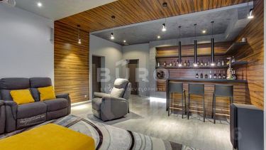 На цокольном этаже обустроена собственная полноценная зона отдыха с баром, караоке, кинотеатром и тренажерным залом. На летней террасе (60 м²) будет удобно накрывать на стол и наслаждаться утренним кофе под пение птиц. Центральные коммуникации обеспечивают городской комфорт в течение всего года: магистральный газ, электричество, водоснабжение и канализация. Котельная оснащена оборудованием фирмы "Buderus" с обвязкой медью. Для дополнительной безопасности установлены охранная сигнализация и система видеонаблюдения.