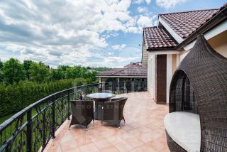 Меблированный двухуровневый коттедж в поселке "Гринфилд". Колоннада, обрамляющая большую закрытую террасу, придает облику этого загородного дома нарядный и торжественный вид. Плавно очерченные линии особняка в сочетании с просторными жилыми помещениями функционально продуманны. Обилие света в гостиной достигается за счет большого количества окон, что создает ощущение дополнительного объема.