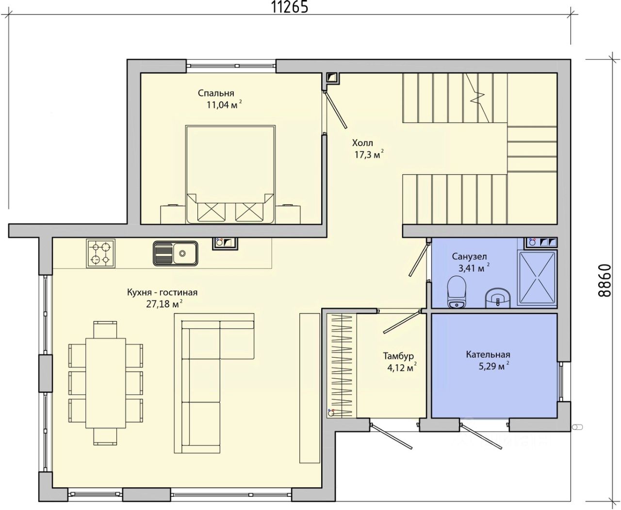 11 на 10 метров, площадью 158,6 м2 с 4 спальнями, террасой и котельной в обжитом поселке бизнес-класса Берег Песочной по Новой Риге, на участке ИЖС 5,9 соток. Заведены все коммуникации, дом полностью готов для работ по внутренней отделке. Наружные стены коттеджа из трехслойных железобетонных панелей БЭНПАН Премиум толщиной 270 мм и БЭНПАН с встроенной теплоизоляцией. Внутренние перегородки - БЭНПАН 100 мм. Высота стен 3,05 метра. Внешняя отделка фасада покраска и штукатурка.