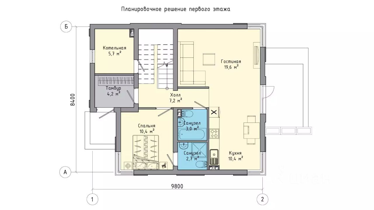 10 на 8 метров, площадью 137,7 м2 с 4 спальнями, террасой и котельной в обжитом поселке бизнес-класса Берег Песочной по Новой Риге, на участке ИЖС 5,5 соток. Заведены все коммуникации, дом полностью готов для работ по внутренней отделке. Наружные стены коттеджа из трехслойных железобетонных панелей БЭНПАН Премиум толщиной 270 мм и БЭНПАН с встроенной теплоизоляцией. Внутренние перегородки - БЭНПАН 100 мм. Высота стен 3,05 метра. Внешняя отделка фасада покраска и штукатурка.