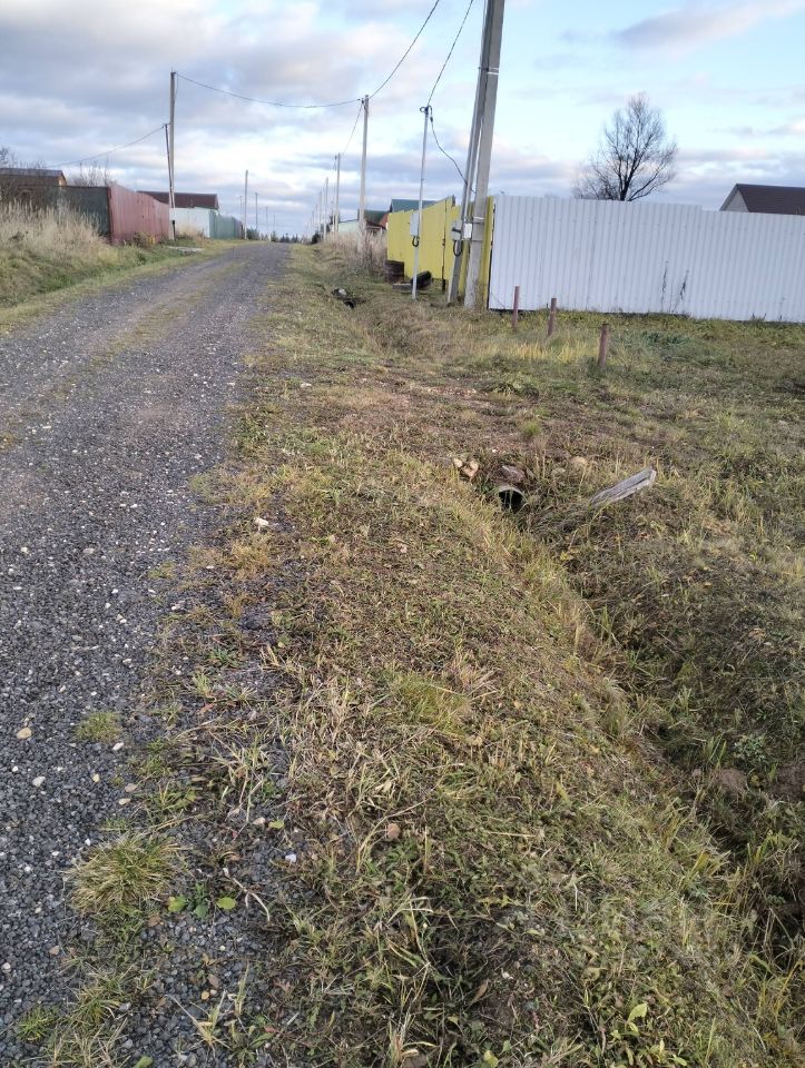 Участок огорожен с двух сторон соседями, с одной стороны сетка рабица, с другой стороны металлический. Земля с небольшим наклоном, есть заезд для машины. Также имеется мебель (кровать, кресло и кушетка), шкаф и компьютерный столик.