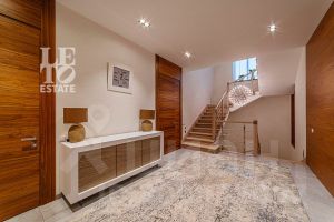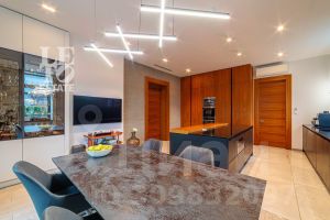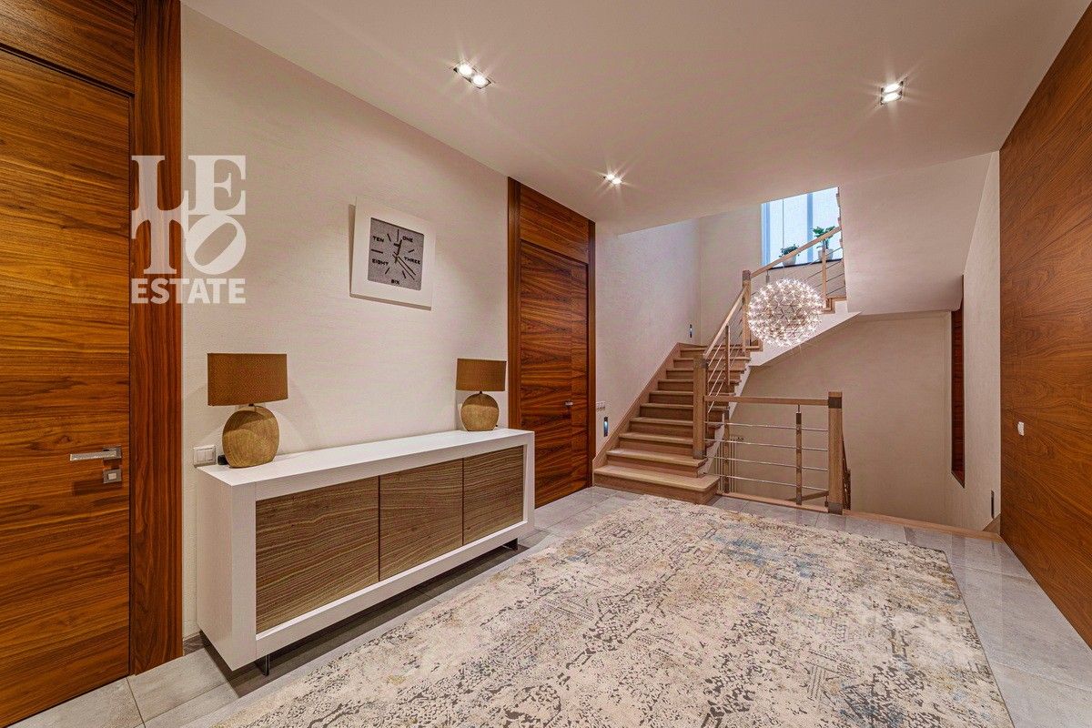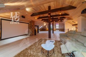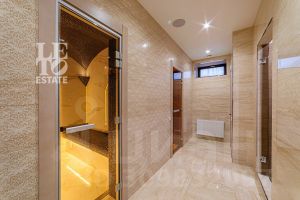 Дом полностью готов для постоянного проживания, есть вcя необходимая встроенная техника и мебель. Для внутренней отделки использованы дорогостоящие материалы. Керамогранит фирмы Porcelanosa, пол инженерная доска - дерево дуб. Кухня со встроенной техникой, холодильник с ледогенератором. Теплый пол разведен в зонах, где плитка. Лестница сделана из натурального дерева - лиственница, дверные порталы - канадский орех. Освещение в доме - Centersvet.