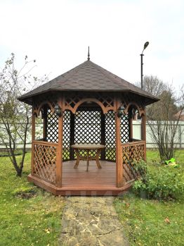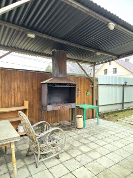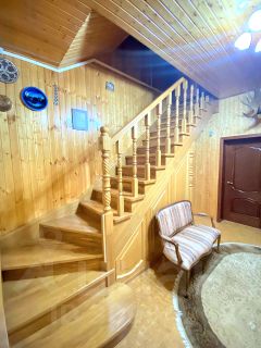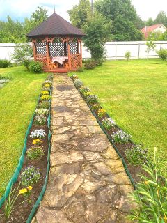 -В глубине сада спрятался 2 этажный дом для гостей, дерево, сруб- 6X4 метра, обшит липовой вагонкой, меблирован.