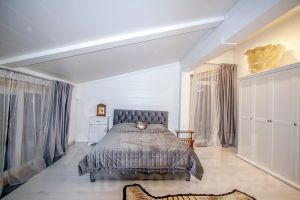 На втором этаже: Спальня с выходом на балкон, Мастер спальня (с ванной комнатой и гардеробной), Ванная комната, Детская. Высота потолков 3-3,20 м.